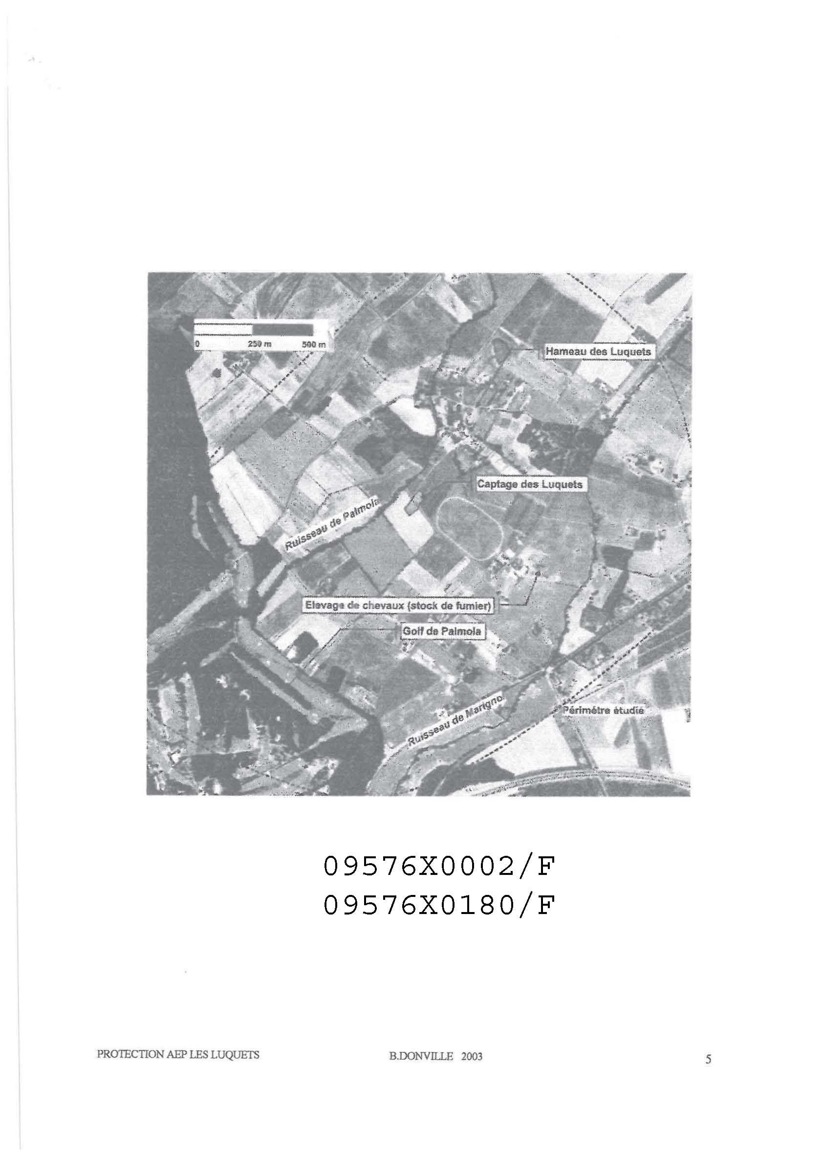 ANCIEN DOSSIER - 6 PIEZOMETRES ONT ETE FONCES AUTOUR DU PUITS LORS DE L'ETUDE - Rapport officiel B. DONVILLE avril 2003