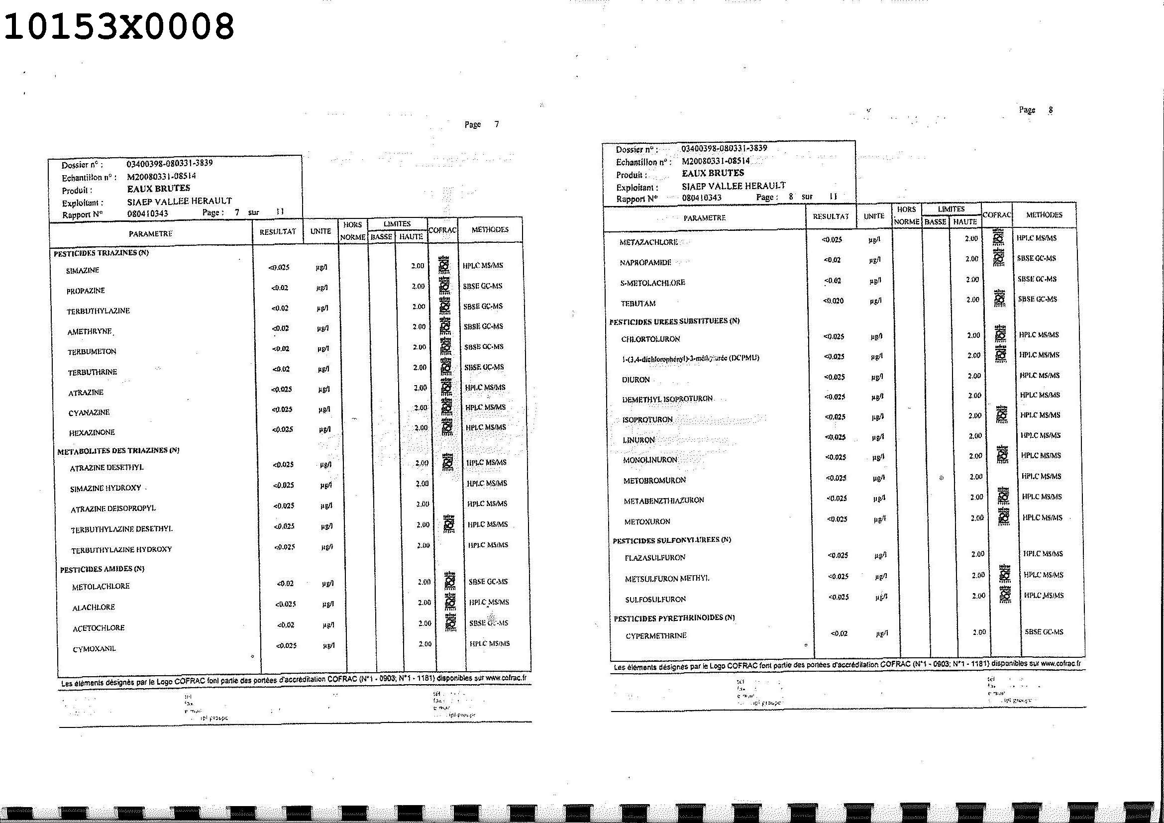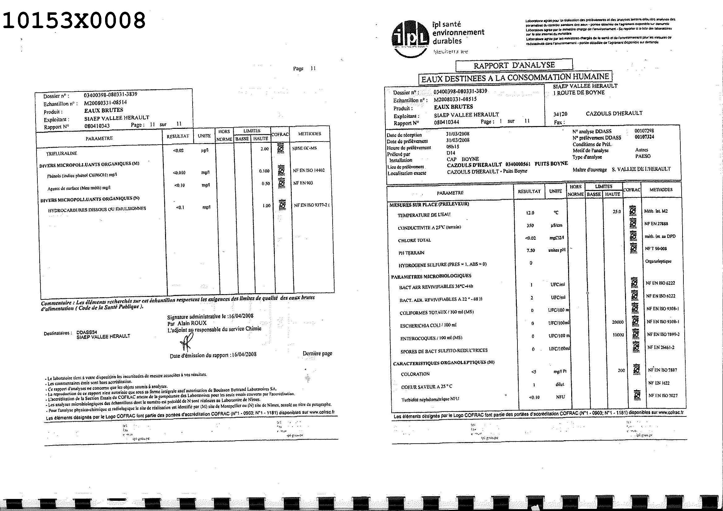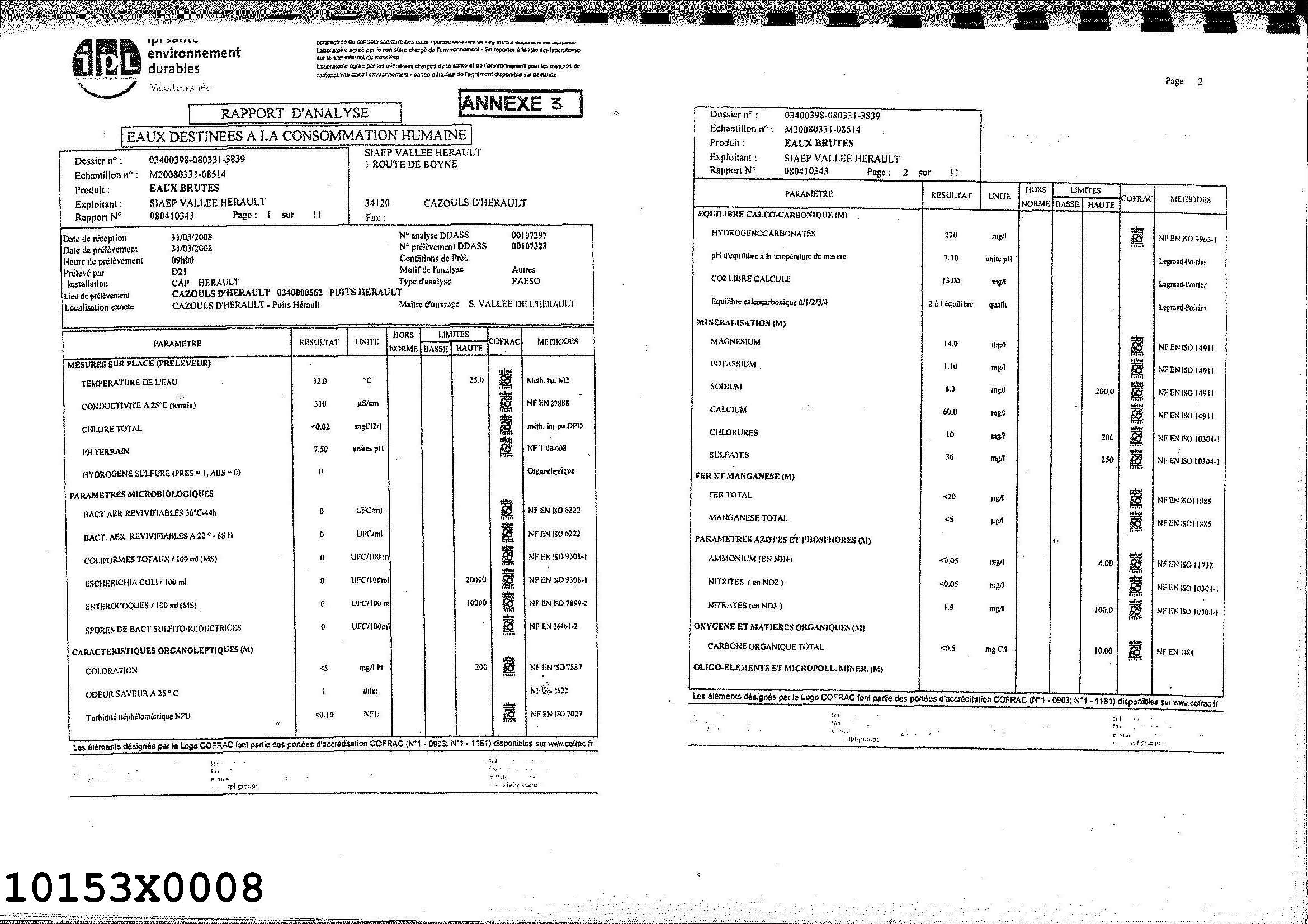 RAP. JOSEPH C. 16/02/76 TOUET F. 22/11/93 - RAP. HYDROGEOLOGUE AGREE F.TOUET 08/2009 - VOIR 10153X0061 - DUP 03/11/2014