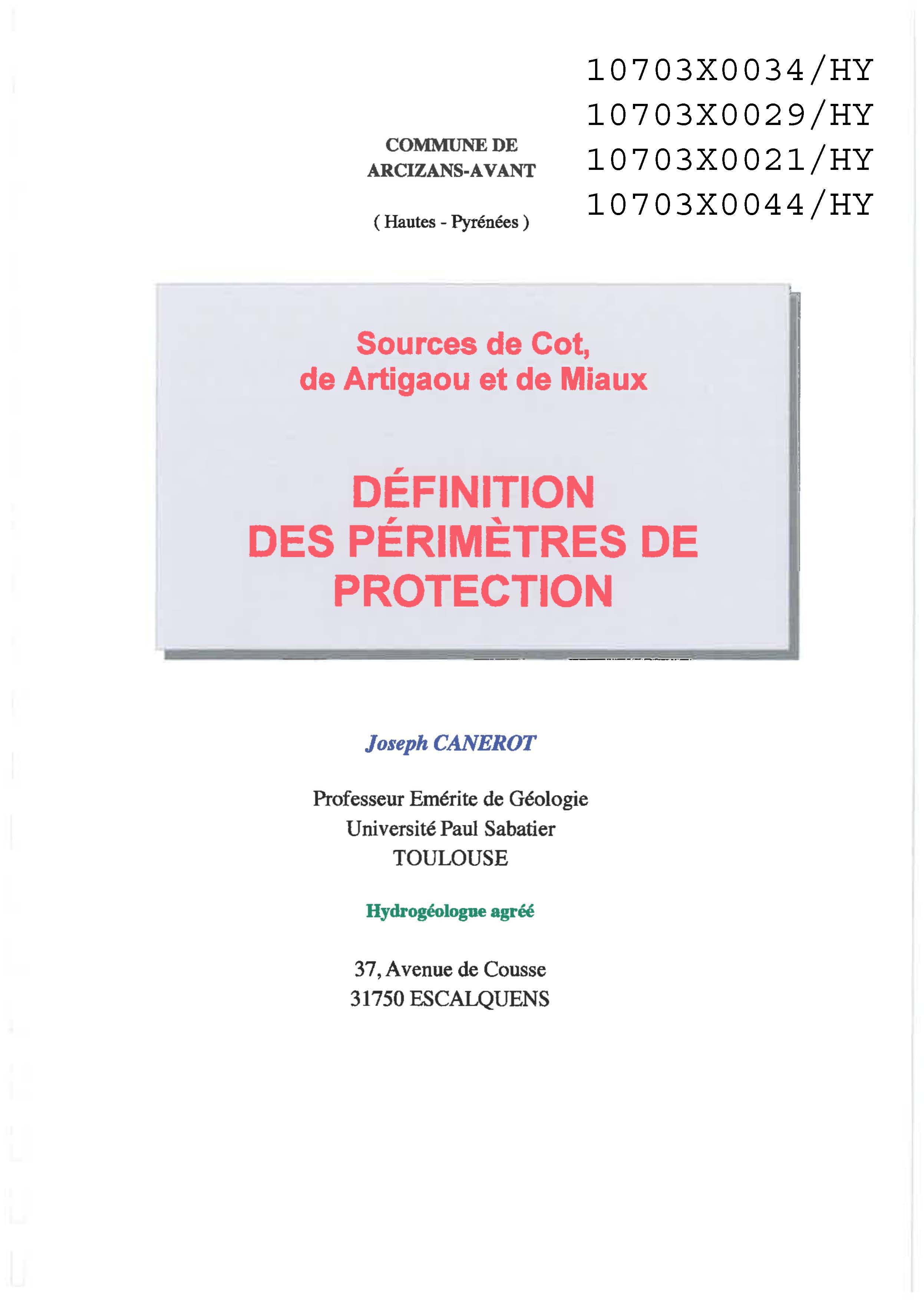 1) RAPPORT J. REY DU 27/12/72 2) Rapport hydro agréé J. CANEROT 17/09/2006