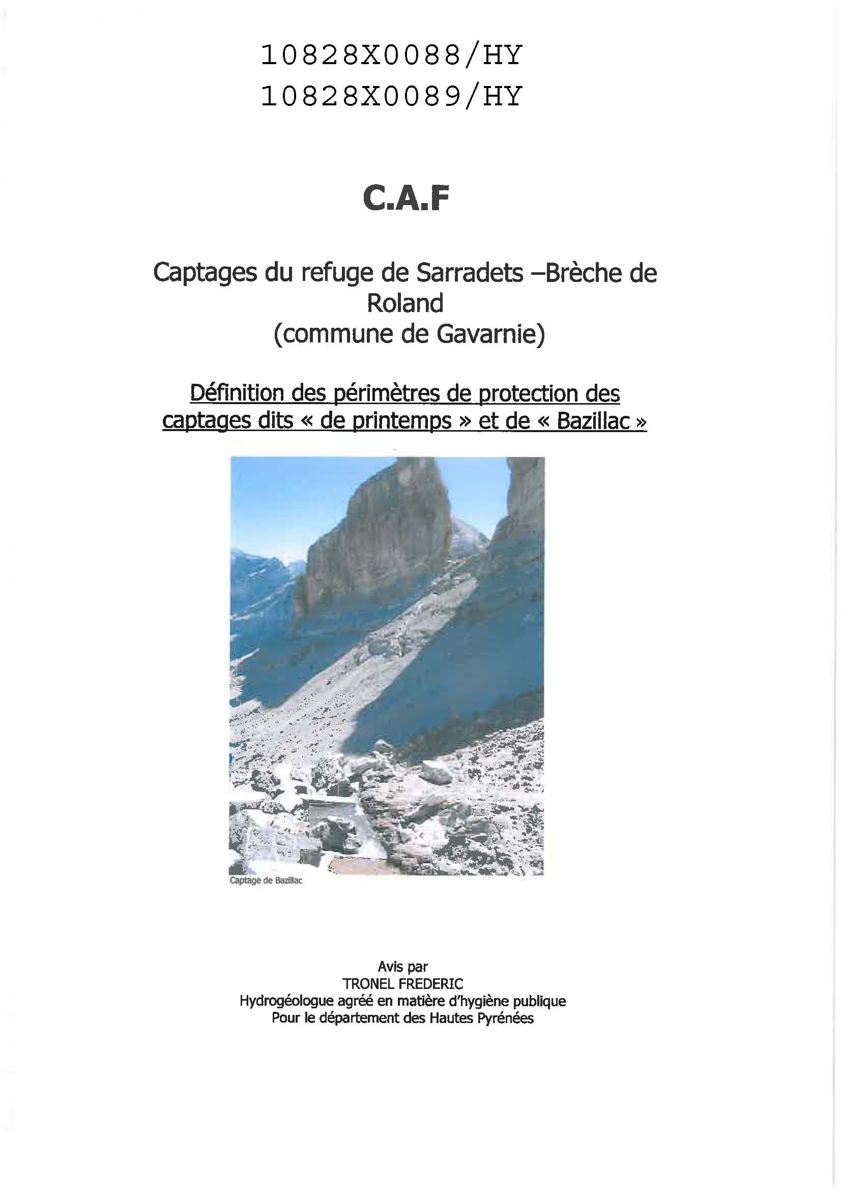 Rapport d'hydro agréé F. TRONEL 02/2007